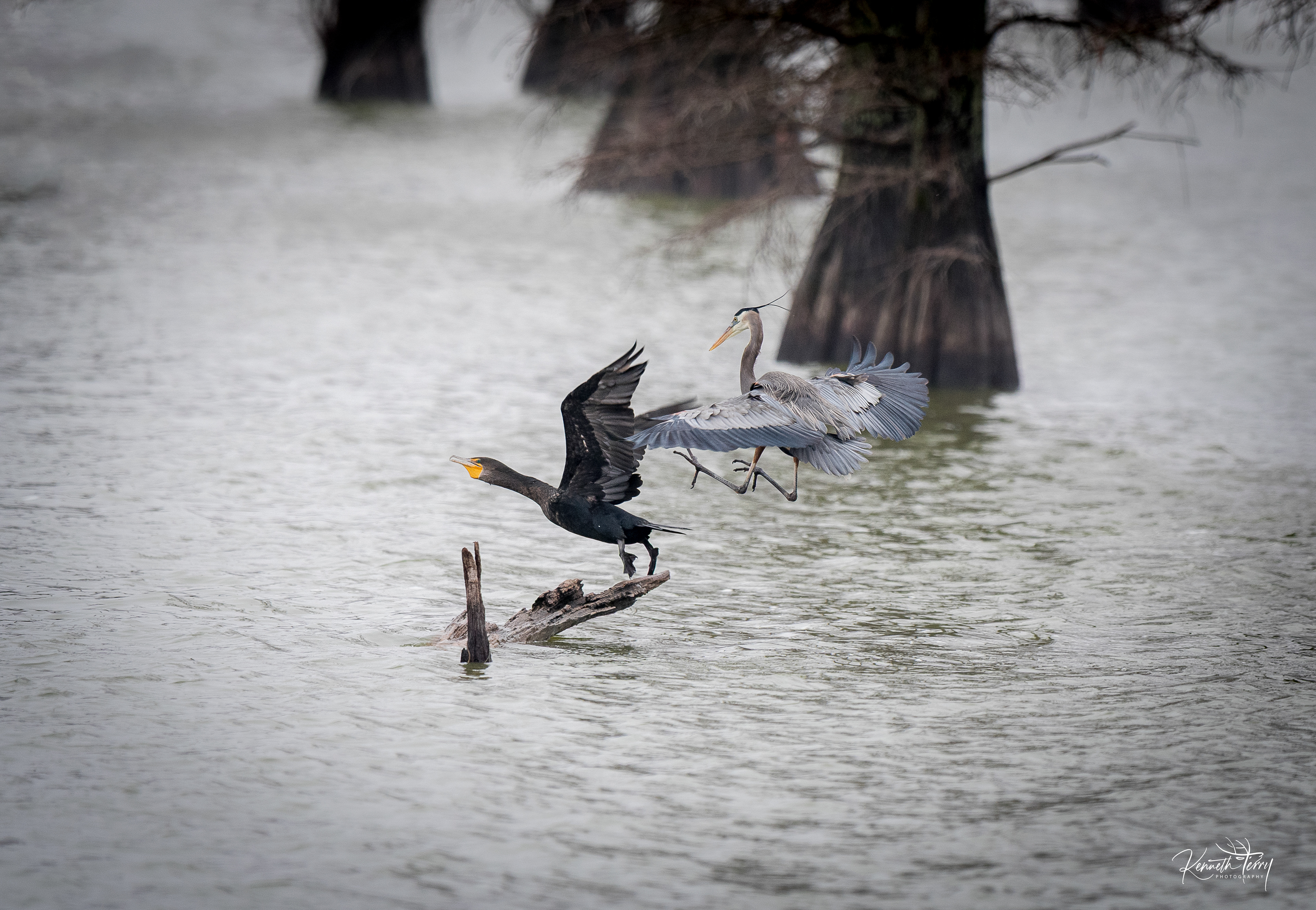 double-crested cormorant/ great blue heron 1/15/2017